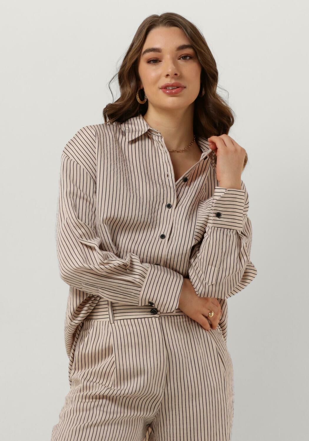 Access Blouse Dames Shirt With Thin Stripes, Maat: M/L, Kleur: Zand