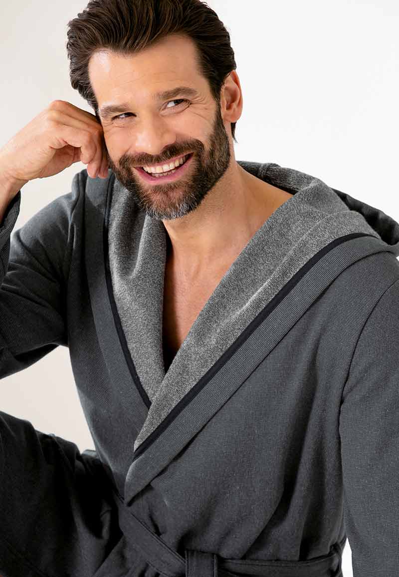 Voor wie van luxe houdt bieden wij je met trots deze Cawo herenbadjas antraciet met capuchon.