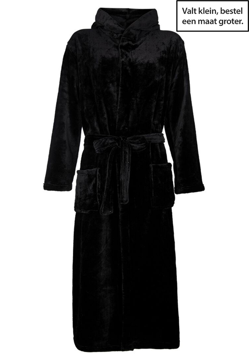 Zwarte fleece badjas met capuchon-l/xl