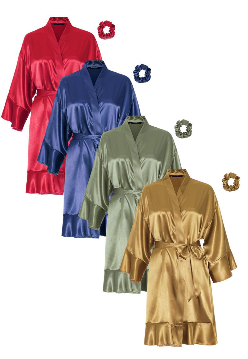 Satijnen kimono dames ruffle borduren - 4 kleuren-goud