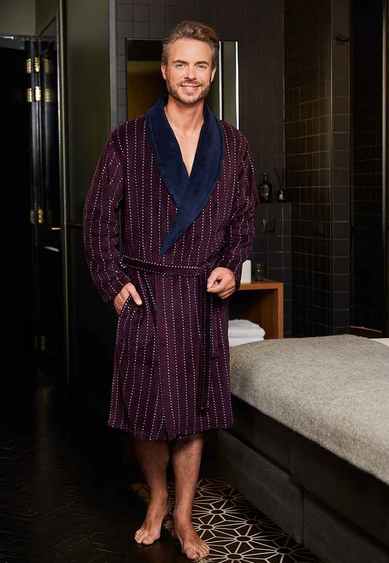 Bordeaux rode heren badjas met streepdessin-l Klarna