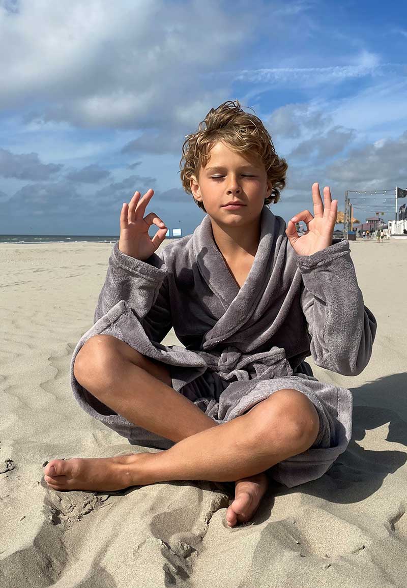 Voor ouders met smaak! Taupe-grijze kinderbadjas, vervaardigd uit hoogwaardig fleece!