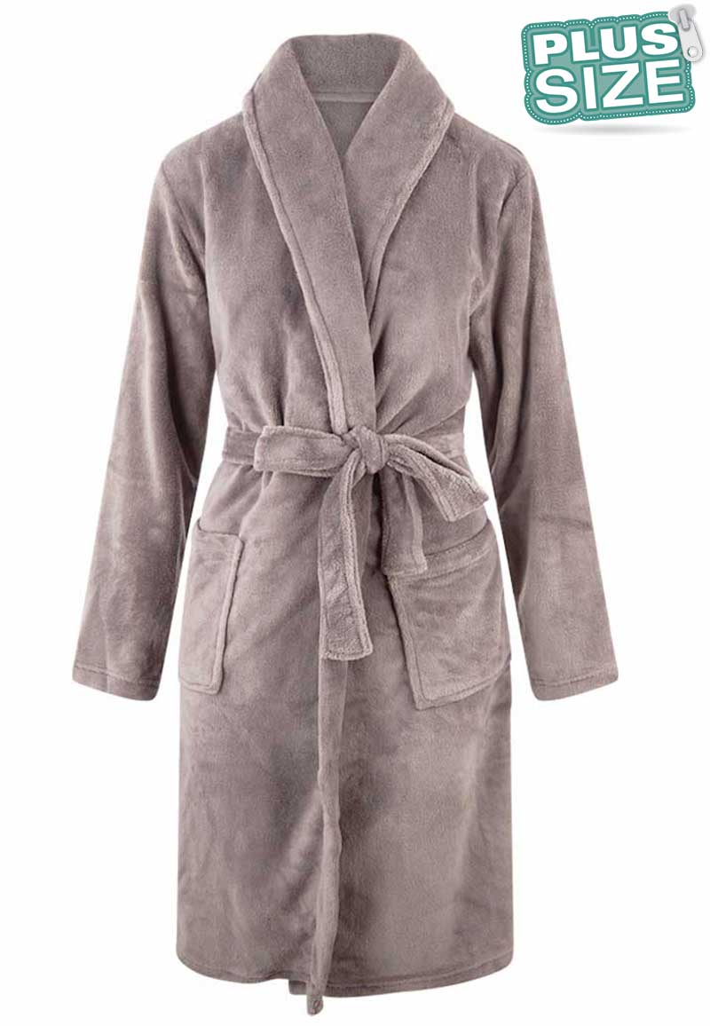 Rits badjas taupe met stippen - fleece-(52-54) XXL