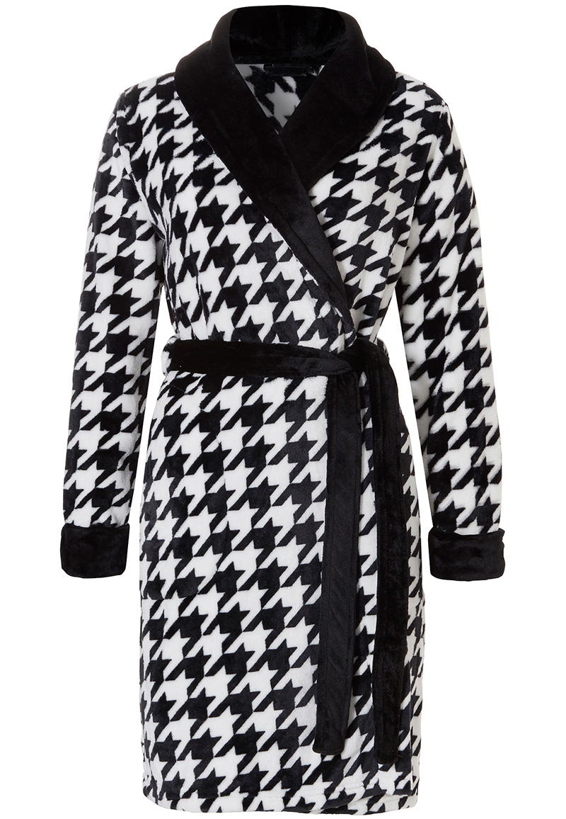 Rebelle damesbadjas pied de poule - zacht fleece-S (36-38)