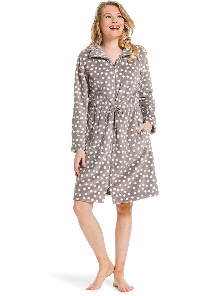 Rits badjas taupe met stippen - fleece-(36-38) S