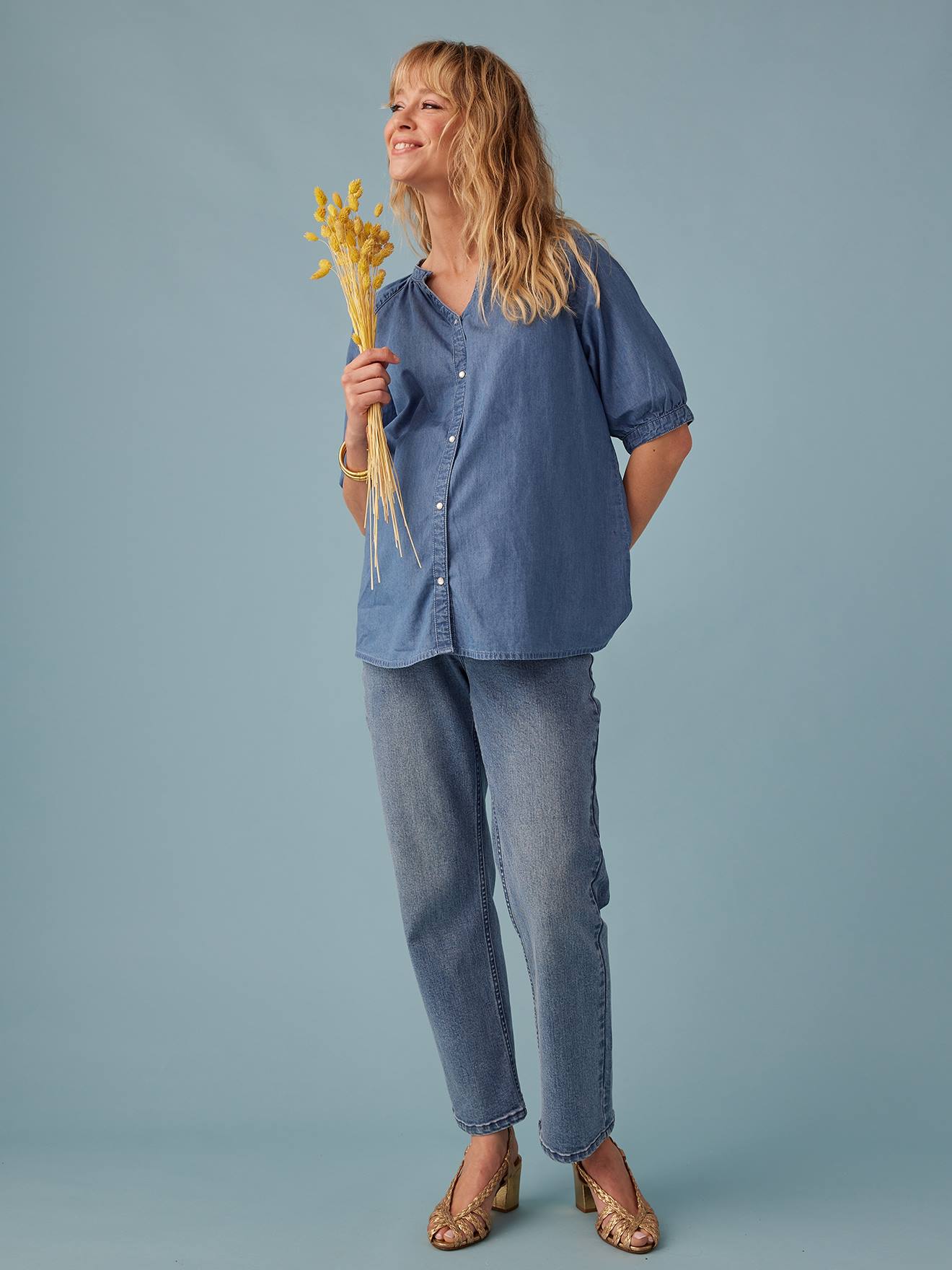 ENVIE DE FRAISE zwangerschapsblouse van lichtgewicht denim, korte mouwen double stone
